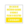 Adesivo "Em Caso de Incêndio Quebre o Vidro e Feche o Registro. Cuidado!" 20x20cm