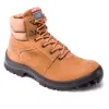 Possui biqueira plástica, fechamento em cadarço e cabedal em couro hidrofugado nobuck (resistente a água).