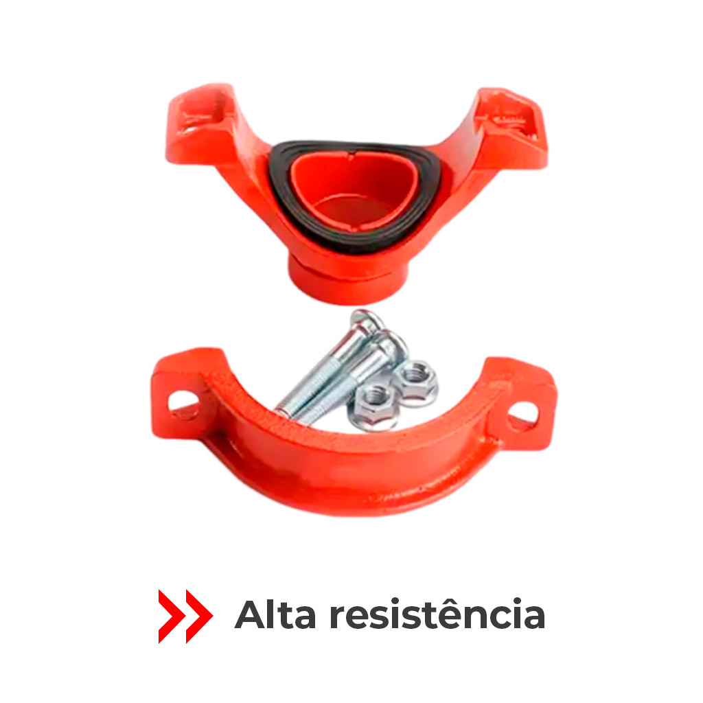 Fabricado em ferro fundido dúctil, suporta até 300 PSI com vedação segura.