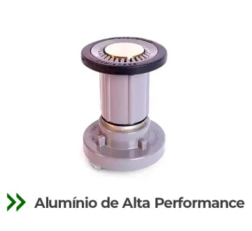 Corpo em alumínio com alta durabilidade e resistência à corrosão.