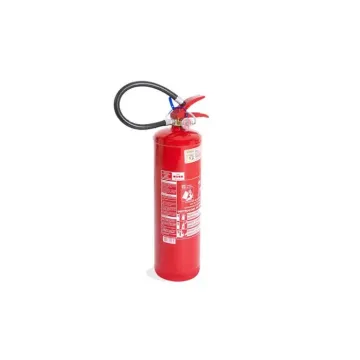 O extintor portátil possui carga de 12 kg de pó químico seco (BC), sendo altamente eficaz no combate a incêndios das classes B e C.