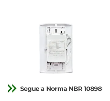 Produto em conformidade com a norma brasileira NBR 10898, que regula sistemas de iluminação de emergência.