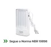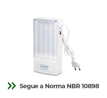 - Produto em conformidade com a norma ABNT NBR 10898, que regulamenta os sistemas de iluminação de emergência no Brasil.