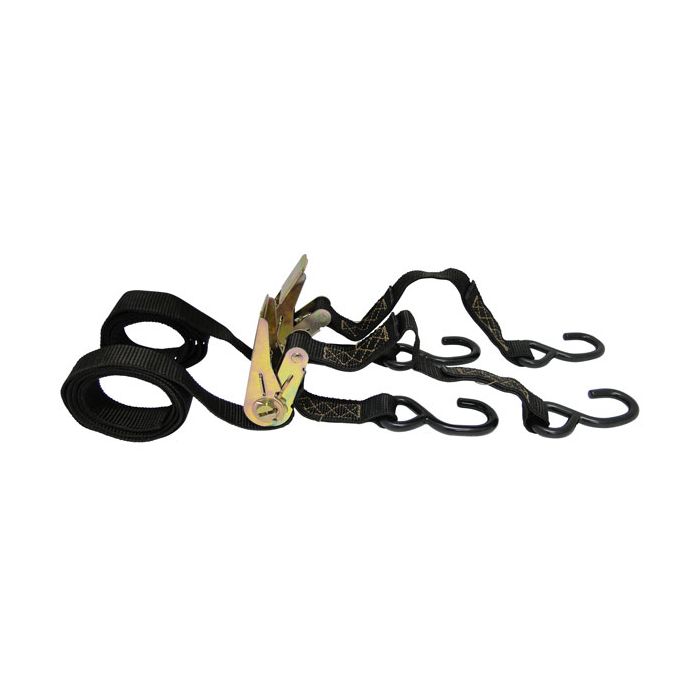 Trava motos. Composto por: 2- Catraca movél 25m c/ Rabicho 200mm 2- Fita polipropileno 25mm x 1.60mts e gancho moto tipo S 25mm.