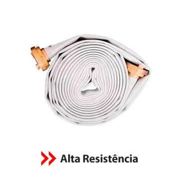 Fabricada com revestimento interno em borracha sintética vulcanizada e revestimento externo em tecido 100% poliéster, oferece excelente resistência à abrasão, bolor, fungos e ruptura. A mangueira acompanha uniões do tipo Storz, conforme NBR 14349, garantindo encaixe rápido e seguro ao sistema de combate a incêndios.