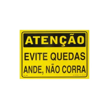 Placa atenção evite quedas ande não corra de PVC 35 x 25cm