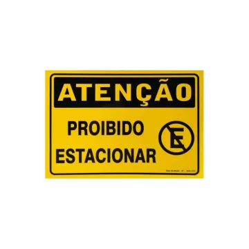 Placa atenção proibido estacionar de PVC 35 x 25cm