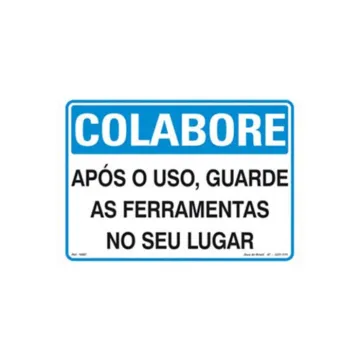 Placa Colabore Após o Uso Guarde as Ferramentas no Seu Lugar de PVC 35x25cm