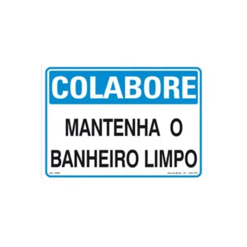 Placa Colabore Mantenha o Banheiro Limpo de PVC 35 x 25cm