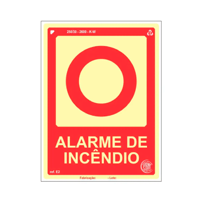A Placa Fotoluminescente de Alarme de Incêndio foi projetada para sinalizar de forma clara e eficiente os pontos de acionamento do sistema de alarme em situações de emergência, garantindo segurança e rápida orientação em ambientes internos e externos. Fabricada em PVC expandido fotoluminescente de alta qualidade, apresenta excelente visibilidade, contraste definido e durabilidade superior, atendendo e superando os requisitos das normas ABNT NBR 13434-2 e ABNT NBR 16820.