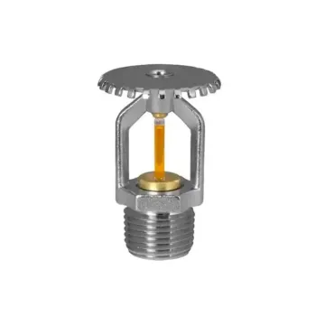 Projetado com resposta rápida, proporciona atuação imediata e eficiente em situações de emergência. O acionamento ocorre através de uma ampola de vidro termossensível com líquido expansivo. Ao atingir 79°C, a ampola se rompe, liberando a passagem de água, que é direcionada pelo defletor superior, garantindo cobertura uniforme da área de proteção.