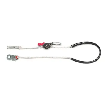 Talabarte de posicionamento confeccionado em corda de poliéster trançada de 14 mm, com mangueira plástica de proteção em todo o entorno para maior durabilidade. Possui regulador metálico para ajuste de comprimento e conta com dois conectores de aço: conector classe T com abertura de 21 ± 3 mm e conector classe B com abertura de 19 ± 3 mm.
