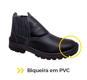- Biqueira em PVC (Sapatão): Protege contra impactos e compressões leves, com menor peso que biqueiras metálicas.