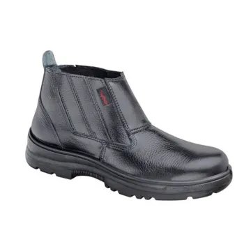Botina de segurança confeccionada em couro vaqueta integral estampa relax, com elástico nas laterais, sem biqueira.