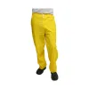 Calça confeccionada em PVC com forro de poliéster, 0,26mm soldado eletronicamente. Possui cordão de poliéster na cintura.
