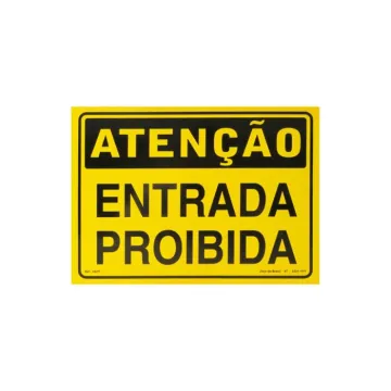 Placa atenção entrada proibida de PVC 35 x 25cm