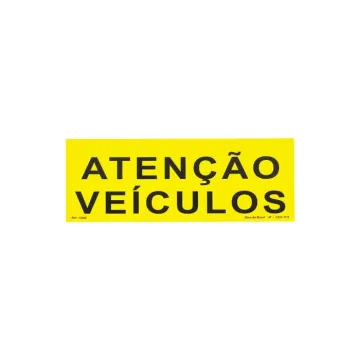 Placa atenção veículos de PVC 33 x 12cm
