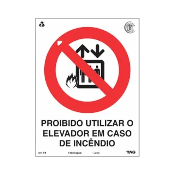 Identificação para proibir o uso do elevador em caso de incêndio.
