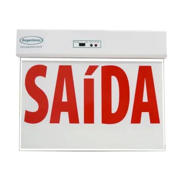 A sinalização de indicação de saída atende os requisitos exigidos pelas normas nacionais (NBR 10898) em dimensões de textos, autonomia e nível de iluminação.