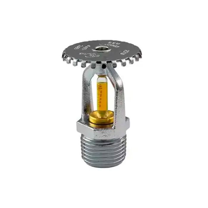 O Sprinkler Upright 79º K5.6 é um dispositivo automático de combate a incêndios projetado para instalação na posição vertical, indicado para ambientes onde o posicionamento superior é essencial. Seu funcionamento é ativado por uma ampola de vidro termossensível que contém um líquido expansivo e uma bolha de ar. Ao atingir 79ºC, o líquido se expande e rompe a ampola, liberando o fluxo de água que é distribuído uniformemente pelo defletor superior, controlando eficazmente o foco do incêndio.