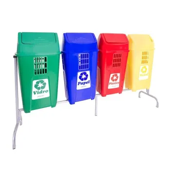 Suporte para 4 lixeiras ecológicas 50L com basculante