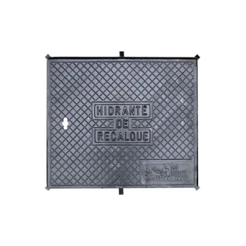 Tampa de ferro fundido nodular (dúctil) com inscrição "hidrante de recalque", nas dimensões 70 x 60 x 2,5cm, resistência de 12t e modelo conforme padrão do Estado do Paraná (PR).